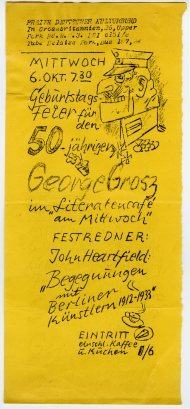 Schließlich stellt die seit 24. Januar 2010 eröffnete Ausstellung „George Grosz. Korrekt und anarchisch“, das umfangreiche Archiv, Zeichnungen und Skizzenbücher des Künstlers vor, der unser Bild der Weimarer Republik wesentlich geprägt hat und der vorausschauend bereits 1932 nach New York ging. Es wurde in den neunziger Jahren von dessen Sohn Peter aus Princeton erworben. Auch Bestände aus anderen Personenarchiven, insbesondere Grosz’ collagierte Karten aus dem Exil an Otto Schmalhausen, sind gleichfalls in diese Ausstellung eingegangen.