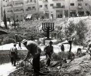 Im Mai 1948 wurde aus dem ehemaligen Mandatsgebiet der unabhängige Staat Israel und Anfang der fünfziger Jahre besuchte eine Gruppe britischer Parlamentarier den neugegründeten Staat. Dabei entstand die Idee, der jungen Demokratie Israel ein repräsentatives Geschenk zu machen und so wurde im Sommer 1953 im House of Lords das „Menorah fund committee“ gegründet, zu dessen Mitgliedern auch Benno Elkan gehörte. Für dieses Werk schuf er 29 Reliefs, mit denen er versuchte, „der Geistesgeschichte des jüdischen Volkes visuellen Ausdruck zu verleihen – von den Tagen Abrahams bis zum Warschauer Ghetto“, wie er selbst in einem Text schrieb. Als die Menorah im April 1956 in Jerusalem enthüllt wurde, konnte Benno Elkan aus gesundheitlichen Gründen an den Feierlichkeiten nicht mehr teilnehmen. 1966 erhielt sie ihren endgültigen Standort gegenüber dem Knesset-Neubau, wo sie zum Symbol für den Staat Israel und zu einer Attraktion für Touristen aus aller Welt wurde.