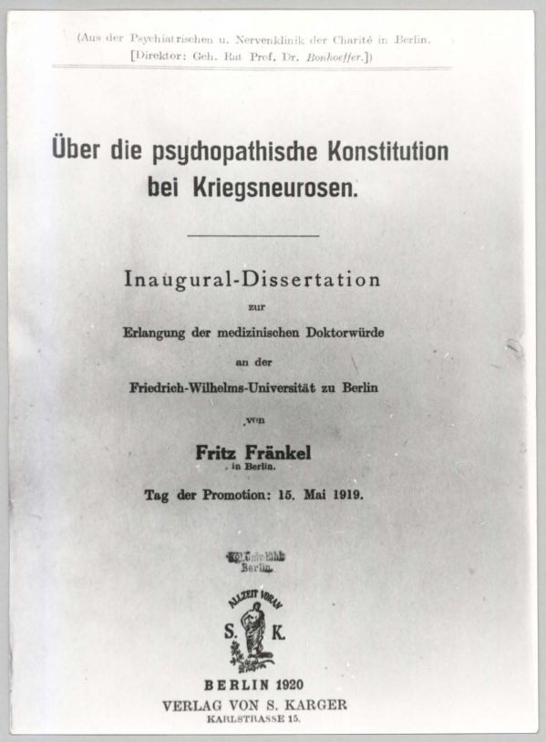 Fritz Fränkel, am 7. September 1892 in Berlin geboren, beginnt nach dem Abitur ein Medizin- Studium an der Berliner Friedrich-Wilhelms-Universität, das er im Jahr 1915 abschließt. Als Kriegsfreiwilliger ist er zunächst Bataillonsarzt und später Leiter einer Station für Kriegsneurotiker in Königsberg. Die Erfahrungen des Krieges bewirken hingegen eine radikale Wende im sozialen und politischen Denken des Mediziners. Der Konferenz des Spartakusbundes im Dezember 1918 – dem Gründungsparteitag der KPD – wohnt Fränkel als Delegierter des Arbeiter- und Soldatenrates Königsberg bei. In seinem Plädoyer für das Selbstbestimmungsrecht der Jugend und die Reformierung bestehender Bildungs- und Wissenschaftsstrukturen entwickelt er eine politische Programmatik, die seine Arbeit als Arzt und Wissenschaftler maßgeblich bestimmen wird. Als Suchtmediziner und Neurologe engagiert Fränkel sich zeitlebens für eine offene, sozialistische Gesundheits- und Sozialpolitik.
