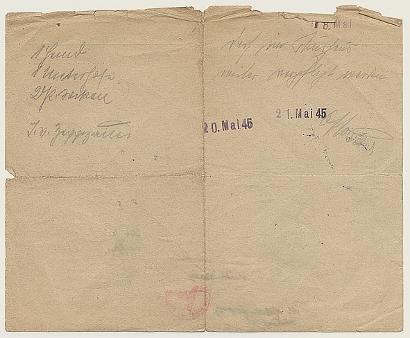 - Rotkreuzbrief mit Zensurstempeln, Peter Edel an Margarete Edel, 21.9.1945 und auf der Rückseite Antwort von Margarete Edel, 25.3.1946, Nr. 999.