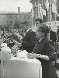 Eslanda Goode Robeson spricht auf der Großkundgebung zum „Internationalen Gedenktag für die Opfer des faschistischen Terrors und zum Kampftag gegen Faschismus und imperialistischen Krieg“ auf dem Bebelplatz in Berlin/DDR, 13. September 1959